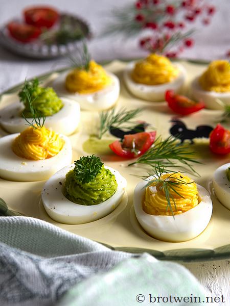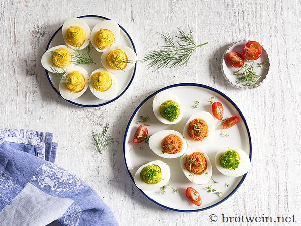 Über klassisch gefüllte Eier freut sich jeder. Egal ob Brunch an Ostern oder Buffet an Weihnachten und Silvester sie sind vielfältig und günstig. Mit wenigen weiteren Zutaten kann man gleich mehrere Varianten zubereiten. Kräuter und klein geschnittenes Gemüse machen es dann auch zu einem optischen Highlight.