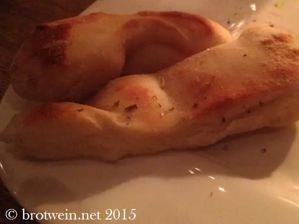 Nach dem Aperetiv auf der Alten Mainbrücke ging es dann ins La Rustica. Dort wartete schon die anderen Blogger. Wir wurden von Chef Enio herzlich bewirtet. Zuerst gab es Pizza satt: eine weiße Pizza mit schwarzen Trüffeln, eine Capricosa mit schafer Salami und eine mit Ruccola, Parmaschinken und Mascarpone. Dazu gab es den vom Chef empfohlenen Chianti.