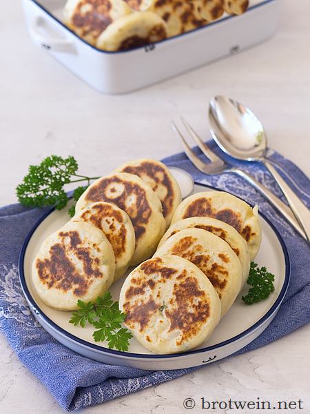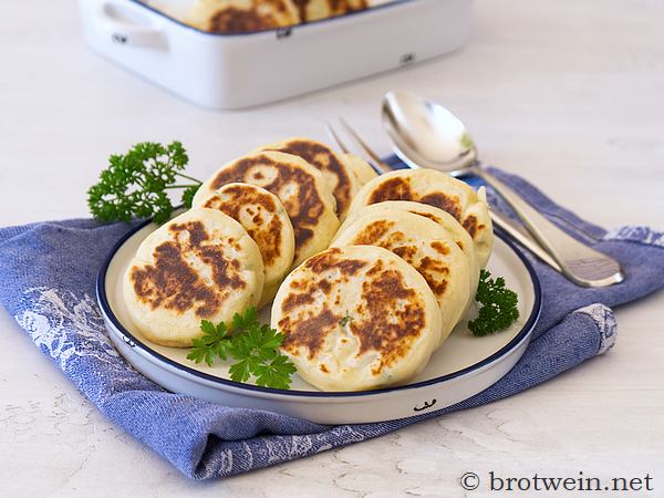 Neben den Küchlein aus frischen Kartoffeln kann man Kartoffeltaler auch aus Kartoffelpüree-Resten braten. Je nachdem wie cremig das Püree ist, braucht man eventuell etwas mehr Mehl um einen gut verarbeitbaren Teig zu erhalten. Einfach mit der empfohlenen Menge für frische Kartoffeln starten und dann nach und nach mehr Mehl in den Teig einarbeiten bis er die entsprechende Konsistenz erhält.