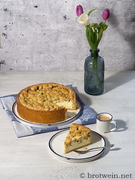 Rhabarber Käsekuchen mit Streuseln – Rezept für Quarkkuchen mit Rhabarber