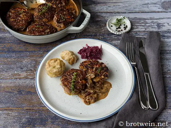 Wildschwein Frikadelle mit Pilz-Sahne-Sauce